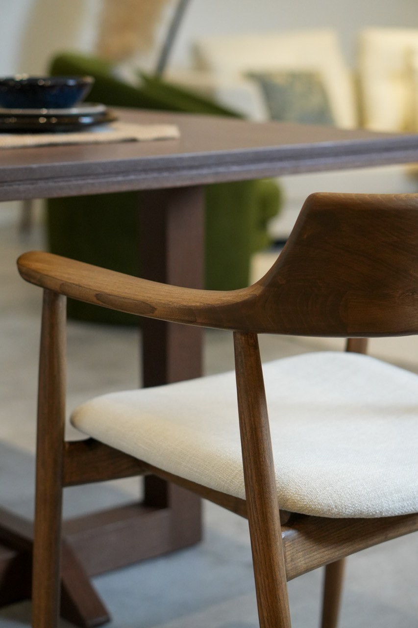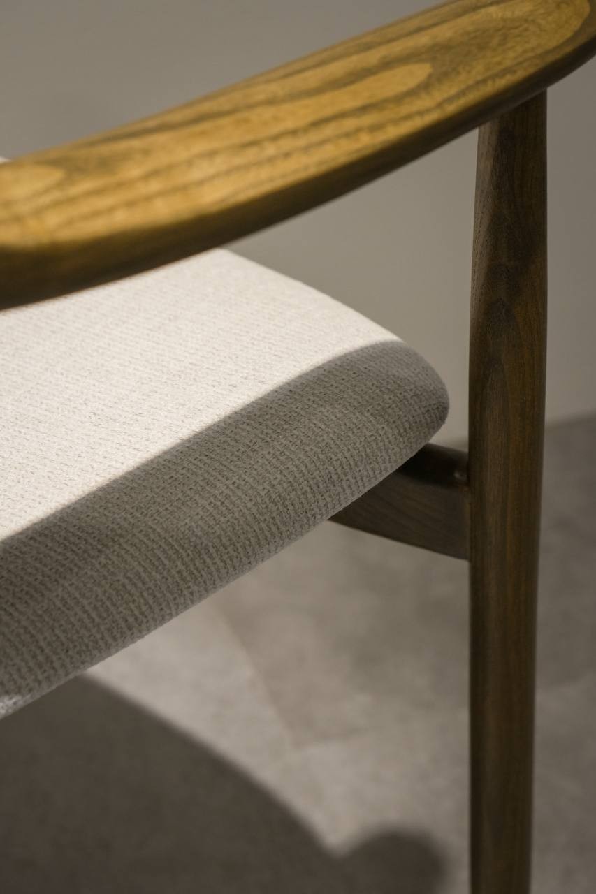 The Haruto Arm Chair effortlessly enhances the ambiance around your dining table, exuding a subtly elevated and inviting feel. Crafted from solid Ash wood, its sturdy structure provides a reliable base for the seat, upholstered in your preferred fabric for a personalized touch. Experience comfort and style seamlessly intertwined with the Haruto Arm Chair.