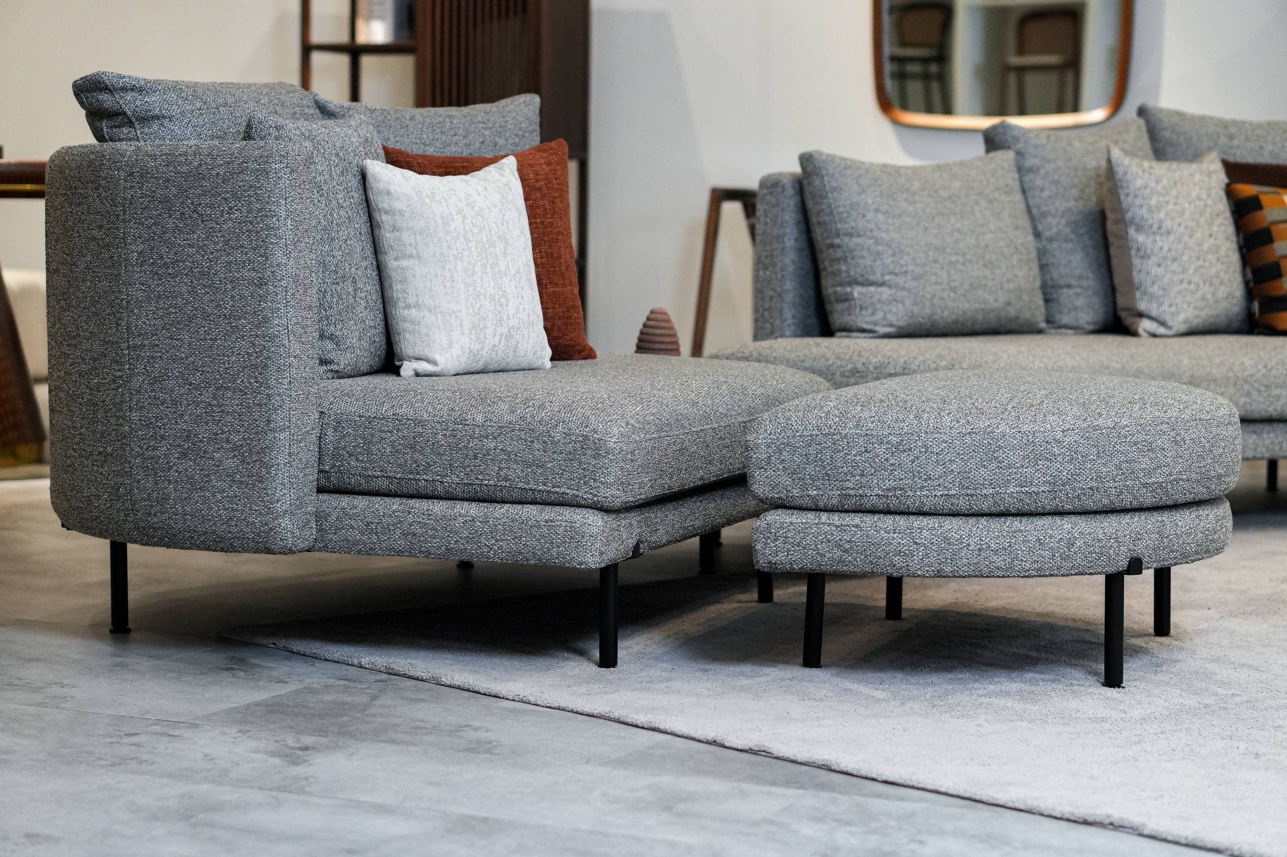 Unwind in sophistication with our Kina single seater sofa and ottoman. Crafted for both solo indulgence and intimate moments, it's the perfect retreat after a long day. Customize this piece to your style by selecting from our range of luxurious fabrics.