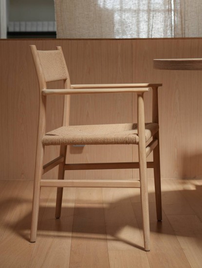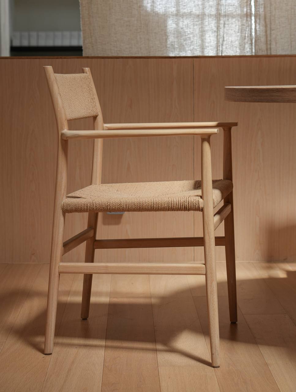 This version also features a practical armrest, making it not only a stylish addition to your dining area at home but also a functional choice for cafés, restaurants, and F&B interiors seeking timeless natural elegance.