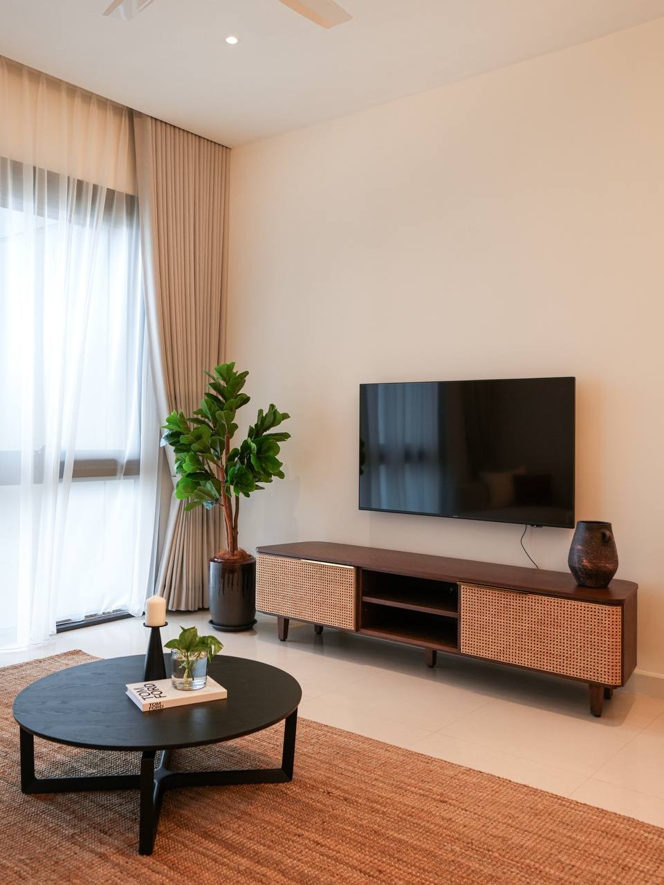 The Mooi designer TV Cabinet is here to save the day and provide you with an elegant, luxurious, yet functional storage solution that is delightful to look at! Its soothing facade is made out of ash veneer structure, natural hand woven rattan door covering, and gorgeous tinted gold trim handles as that subtle opulent detailing. This modern piece is sure to be the focal point and a feature furniture in your living space!