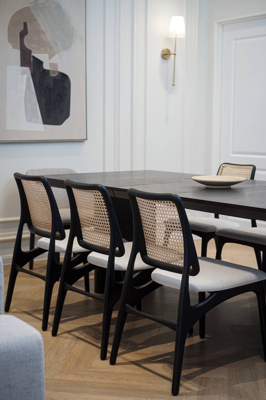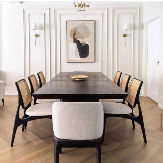 Classics meets timeless; our KAI rattan dining chair is constructed with mortise and tenon joints. Perfect for a dining table or dressing table, It features natural rattan back lining with ash wood; elegant is one word to describe this KAI rattan chair! Choose various wood colors, fabric upholstery materials, and colors to suit your space!