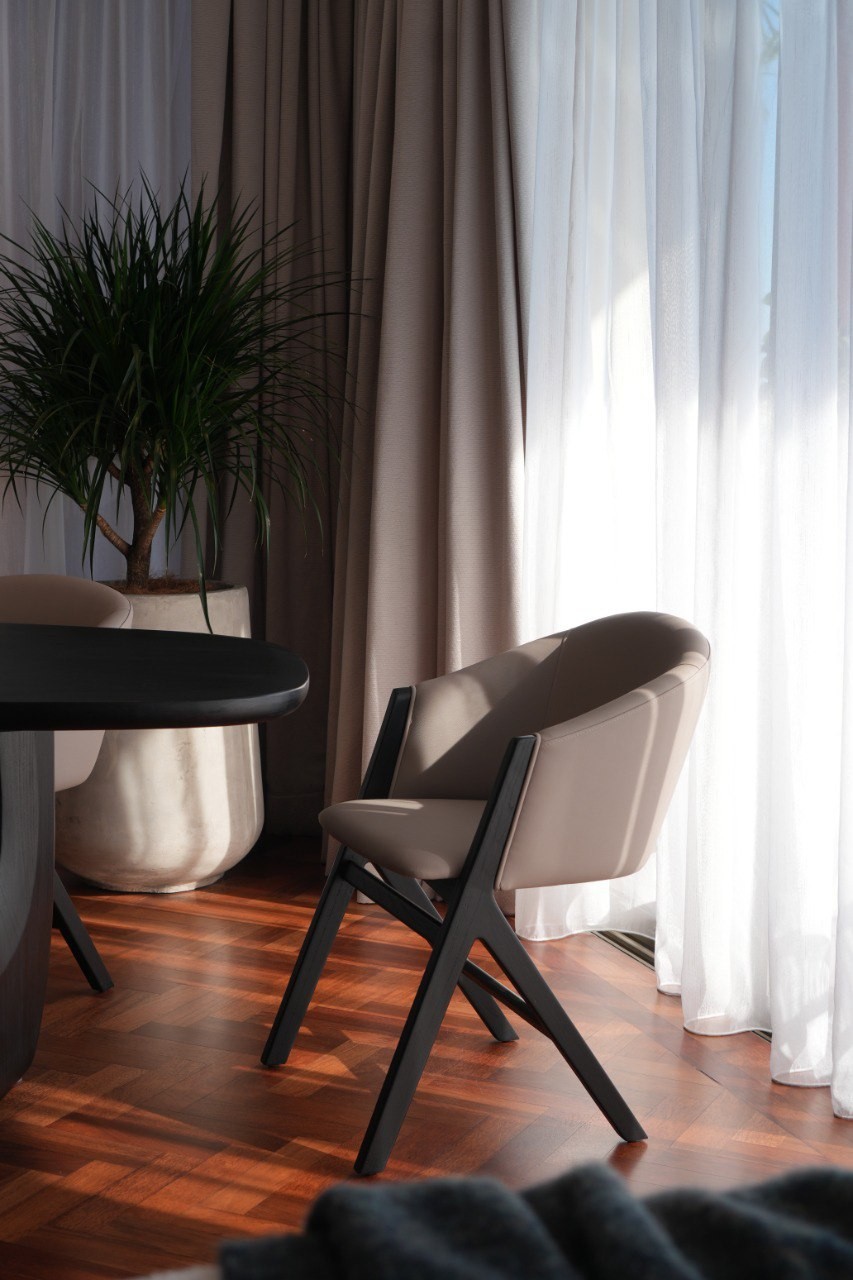 Sleek & minimalistic, our upholstery Casey Chair was built with your comfort in mind with its cushioned seats. A unique and classy statement piece, the casey flow elegantly, especially when viewing it at different angles, while maintaining a sturdy frame. Choose from our variety of designer wood colours to achieve the look you want. This is truly the perfect dining chair for your modern dining room.