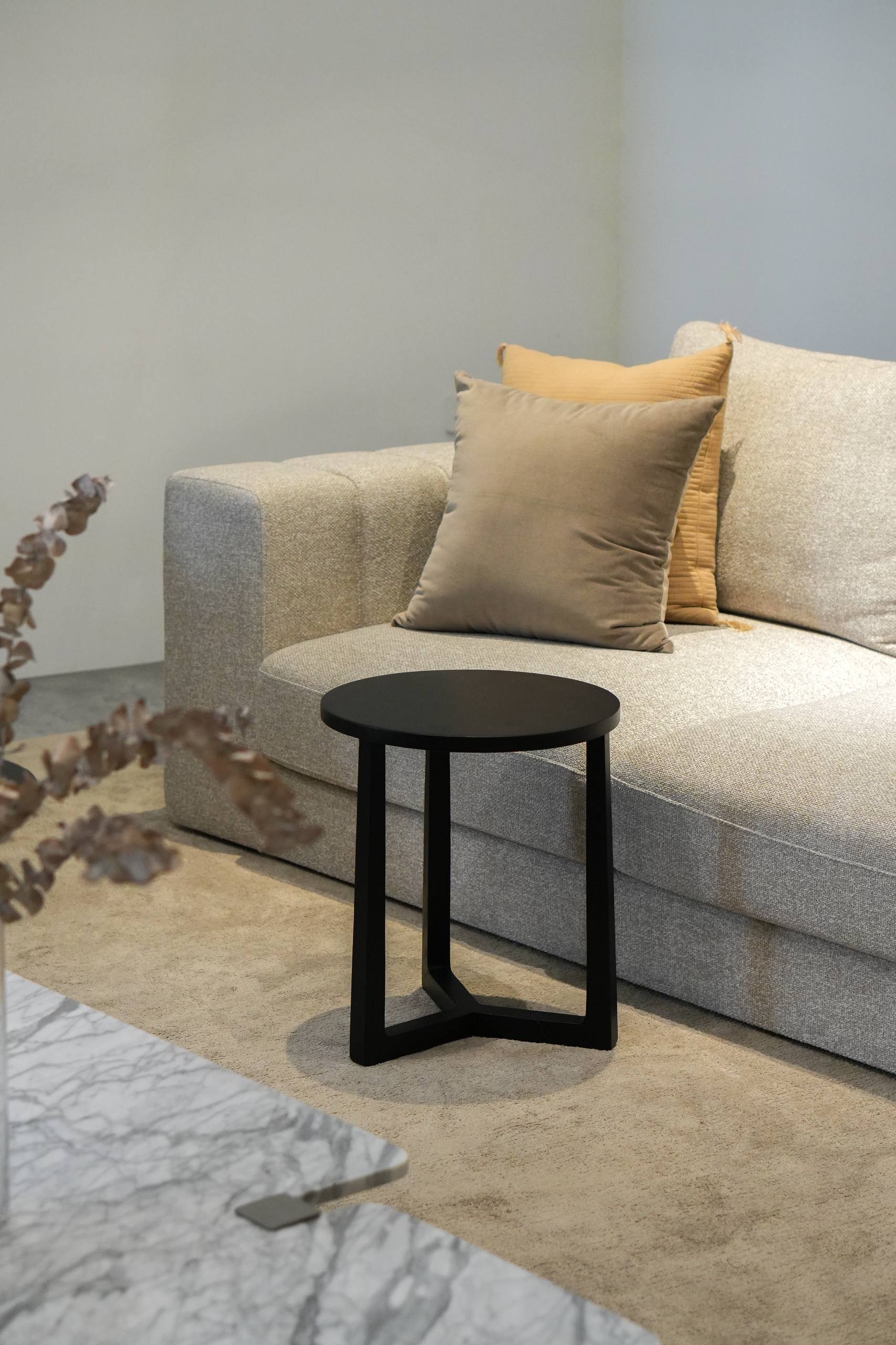 Looking for a round, minimalist side table that complements any interior? The Brother Wooden Side Table is crafted to do just that. Its three-spoke angular leg frame adds an artistic, sculptural touch to your space, creating a dynamic look while allowing air and light to flow freely — ideal for smaller rooms or open layouts.