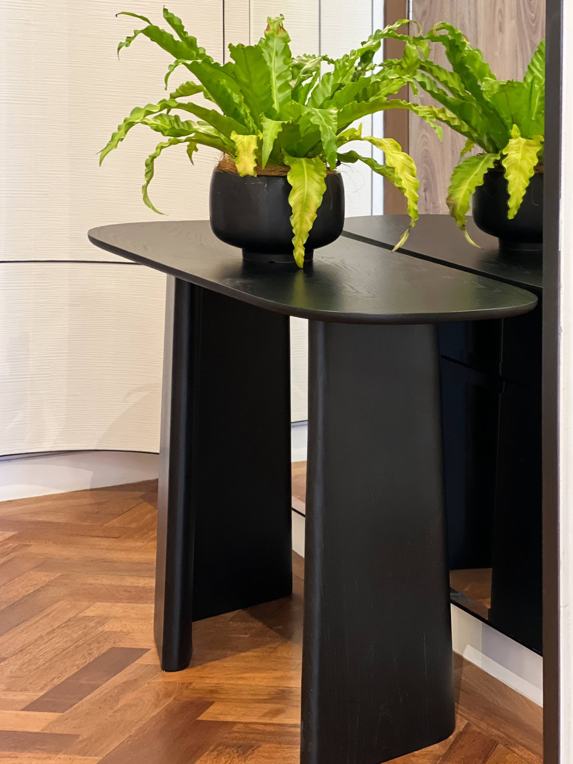 Discover the Dua Pokok console – a versatile masterpiece with artistic legs and a gracefully curved top that seamlessly adapts to your needs. Whether it's an elegant entryway table, a functional workspace, or a stylish vanity, this console offers endless possibilities. Elevate your interior decor with this ideal choice, combining top-notch furniture design with multifunctional home furnishings.