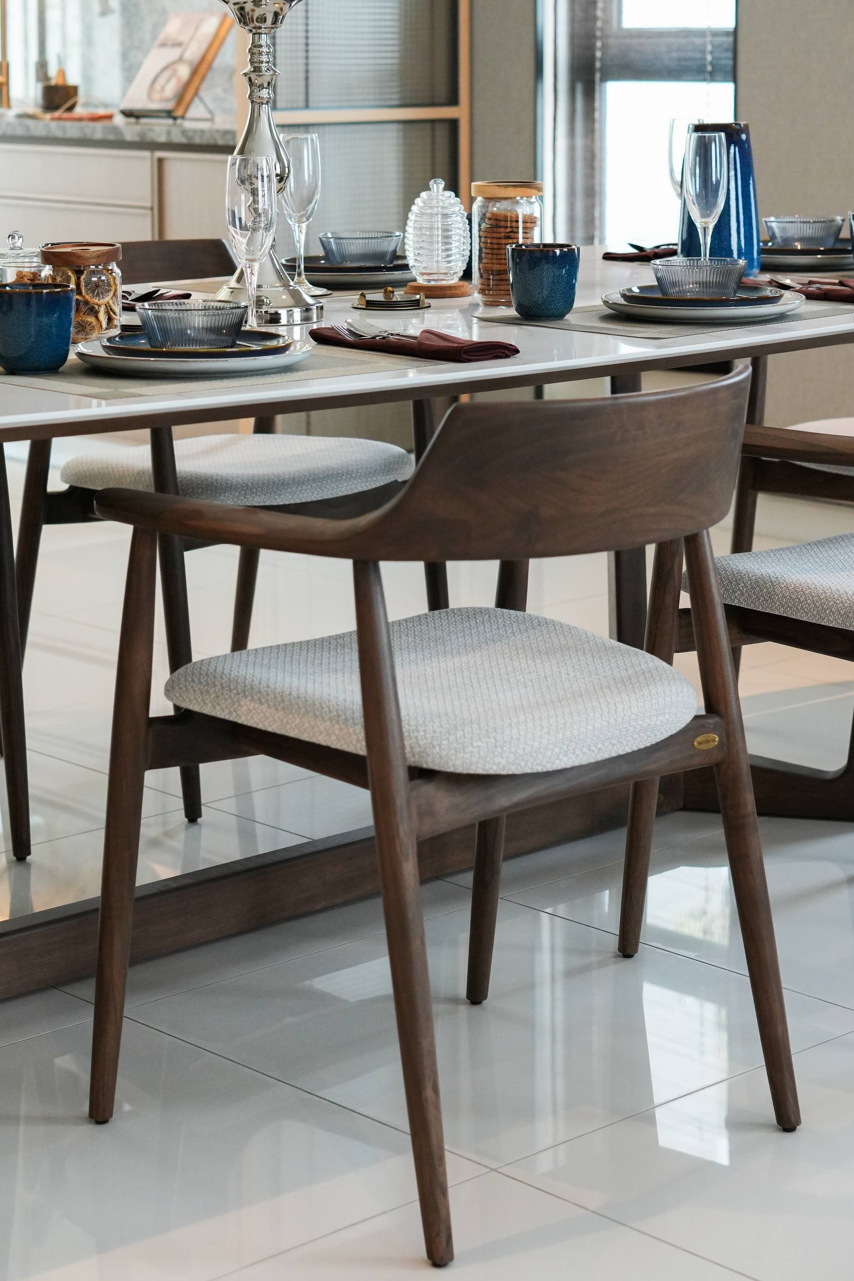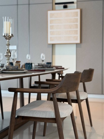 The Haruto Arm Chair effortlessly enhances the ambiance around your dining table, exuding a subtly elevated and inviting feel. Crafted from solid Ash wood, its sturdy structure provides a reliable base for the seat, upholstered in your preferred fabric for a personalized touch. Experience comfort and style seamlessly intertwined with the Haruto Arm Chair.