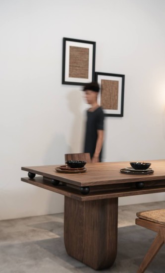 The Ladurée Table is a sculptural dining piece designed for modern organic living. Crafted from solid wood, its bold pedestal legs and rounded detailing create a sense of quiet strength and balance. The smooth rectangular top showcases the warmth of natural wood grains, making it perfect for family meals, intimate dinners, or stylish gatherings.