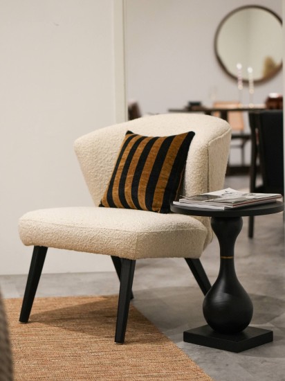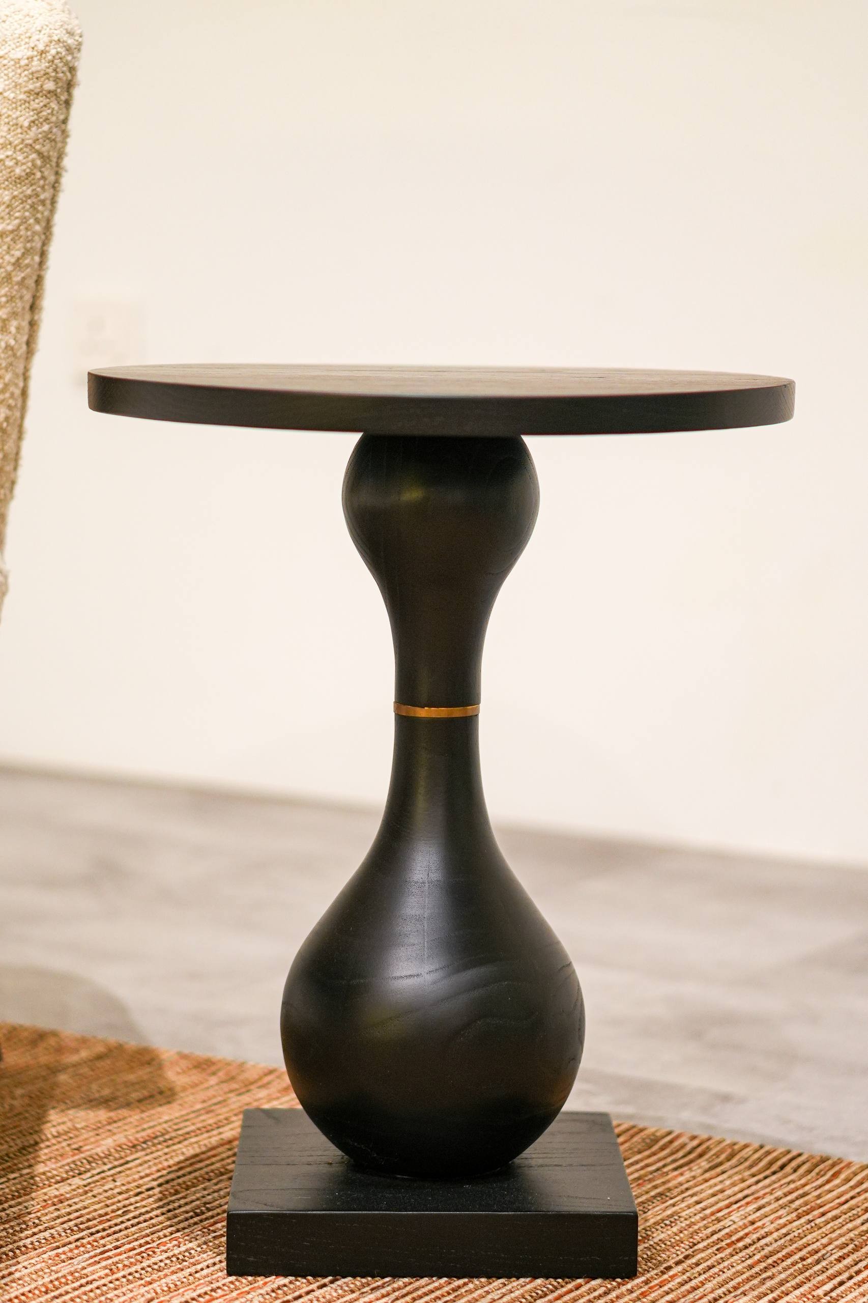 Meticulously crafted based on the silhouette of an hourglass shape, our Merton round side table brings a dash of contemporary style. Made out of solid wood, it features delicate and beautiful detailing, such as the subtle brass texture that seemingly joins the mid section together. Everything from the base to the table top is tastefully put together, with a flat top surface that can hold your drinks, snacks, designer magazines etc.